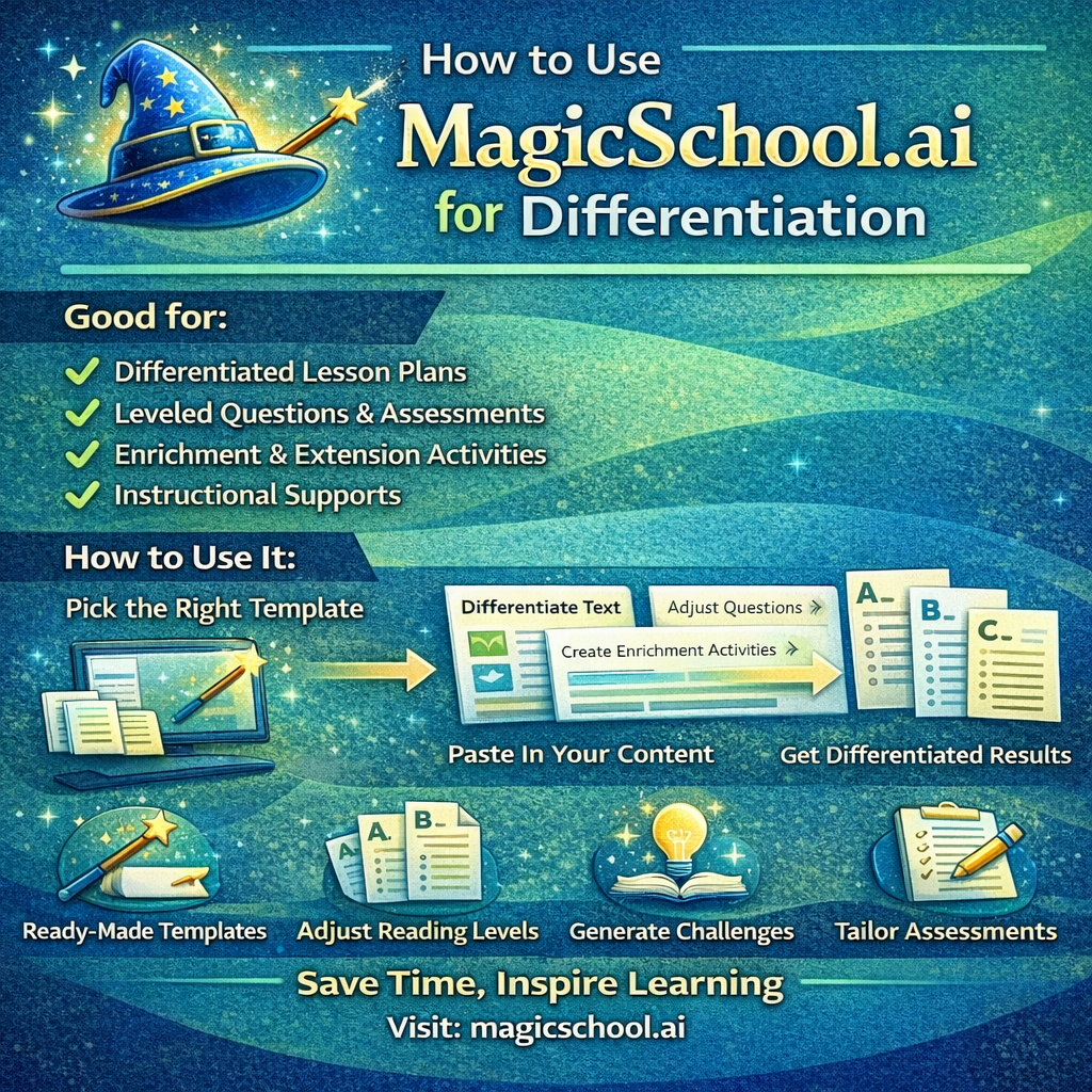 MagicSchool.ai is an AI platform built specifically for educators. It offers ready-made templates that help with lesson planning, assessment creation, and differentiation tasks. Unlike general-purpose tools, it is designed with teacher workflows in mind, making it easier to create materials quickly and consistently. MagicSchool.ai has a free version with a wide range of templates and a paid plan that unlocks additional features. Check the tool’s site for the most current details on features and pricing. A link to the site is provided below.